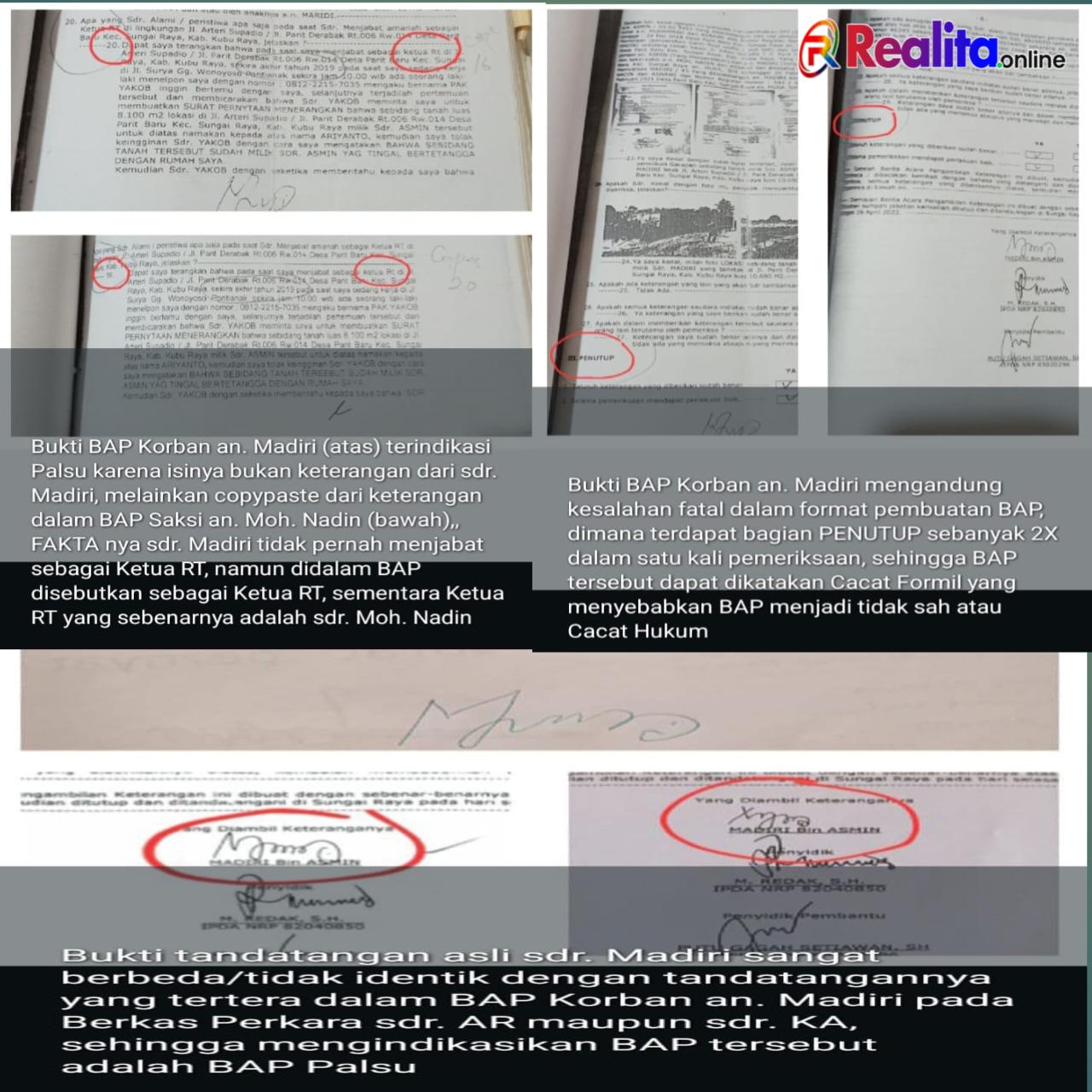 Perkembangan terbaru dalam perkara sengketa tanah Parit Derabak memasuki babak baru. Pada sidang pembuktian Peninjauan Kembali (PK) di Pengadilan Negeri (PN) Mempawah pada 6 Agustus 2025, terungkap fakta mengejutkan: Berita Acara Pemeriksaan (BAP) korban atas nama Madiri, yang digunakan sebagai dasar dakwaan, terbukti mengandung kepalsuan.