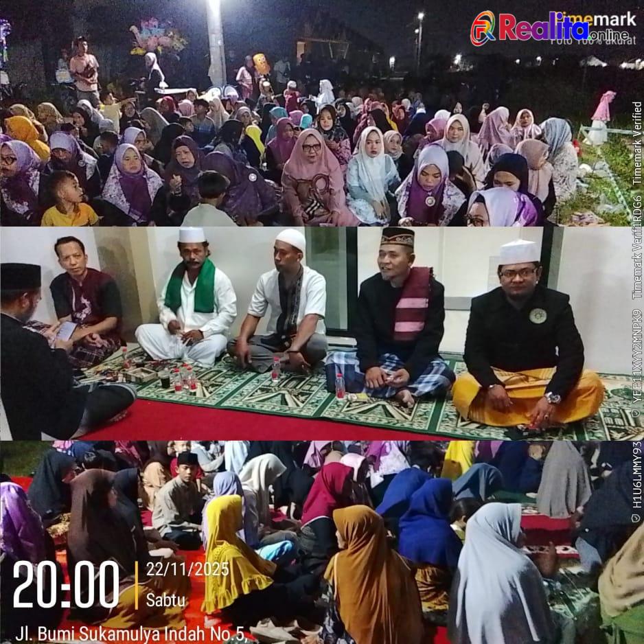 Kabupaten Bekasi, Realita.online – Menghadiri undangan dalam acara Maulid Nabi Muhammad Saw pada 1447 Hijriah, Hj. Desi Kurniati Malik, SH mengatakan, pentingnya meningkatkan kecintaan dan penghormatan kepada Nabi Muhammad SAW. Mengambil pelajaran dari kisah hidup dan ajaran Nabi Muhammad SAW, di halaman Masjid Jami Hidayatuttauhid, Perumahan Nusantara Residence, Kampung Kempes, Desa Sukamulya, Kecamatan Sukatani, Sabtu (22/11/2025).