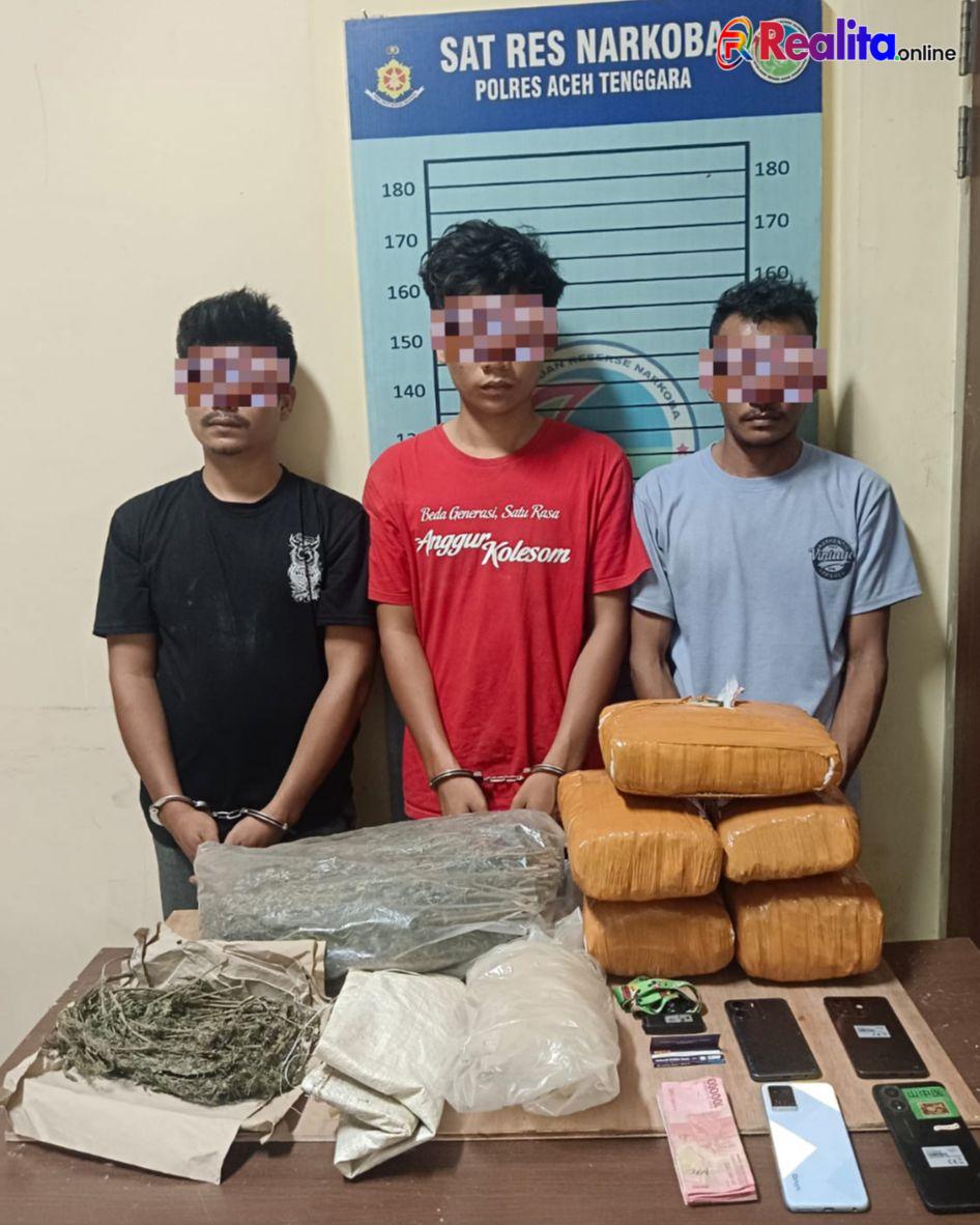 Suasana santai di sebuah rumah di Desa Leuser, Kecamatan Ketambe, mendadak berubah tegang saat tim Satresnarkoba Polres Aceh Tenggara melakukan penggerebekan, Senin (06/04/2026) sekira pukul 16.00 WIB. Tiga pria yang berada di dalam rumah tersebut tak mampu berkutik ketika petugas menemukan narkotika jenis ganja dalam jumlah besar.