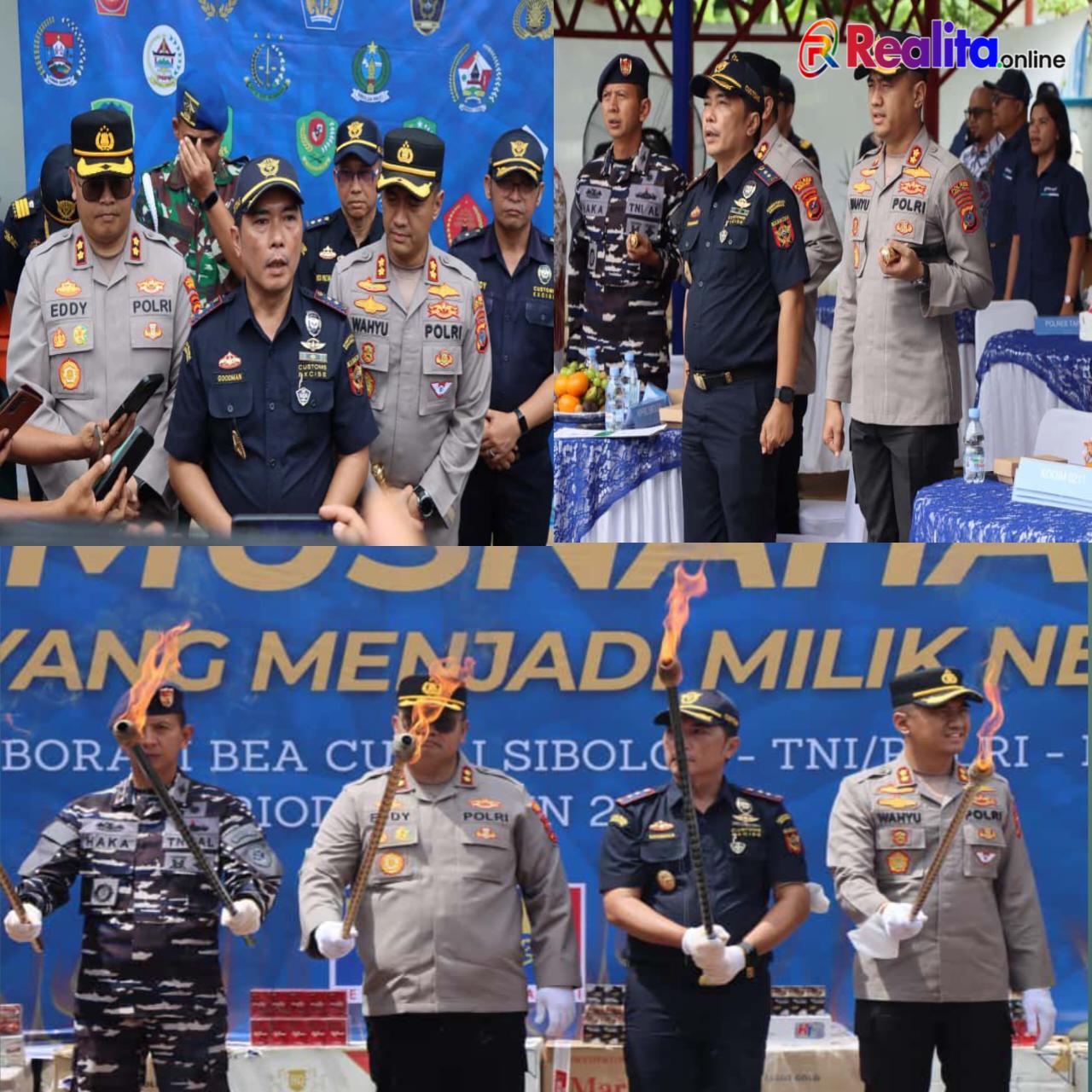 Kantor Pelayanan Pajak dan Bea Cukai (KPPBC) Tipe Pratama Sibolga, bersinergi dengan TNI dan Polri, melaksanakan pemusnahan Barang Milik Negara (BMN) hasil penindakan. Barang yang dimusnahkan didominasi oleh 1.351.388 batang rokok ilegal dan minuman keras (Minuman Mengandung Etil Alkohol/MMEA), dengan total nilai barang mencapai Rp1.882.244.740,00.