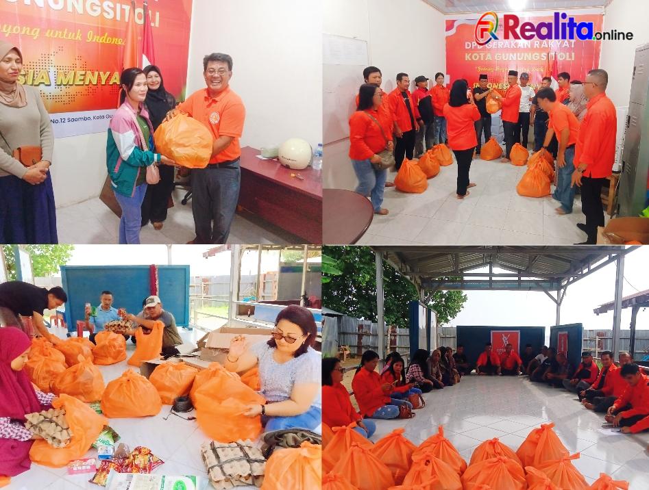 Pembagian sembako ini merupakan kegiatan rutin di Ormas Gerakan rakyat kota Gunungsitoli yang dilaksanakan oleh seluruh jajaran DPD Ormas Gerakan rakyat kota Gunungsitoli secara bergantian melaksanakan kegiatan sosial tersebut sebagai bentuk pengabdian Gerakan rakyat kota Gunungsitoli kepada masyarakat.