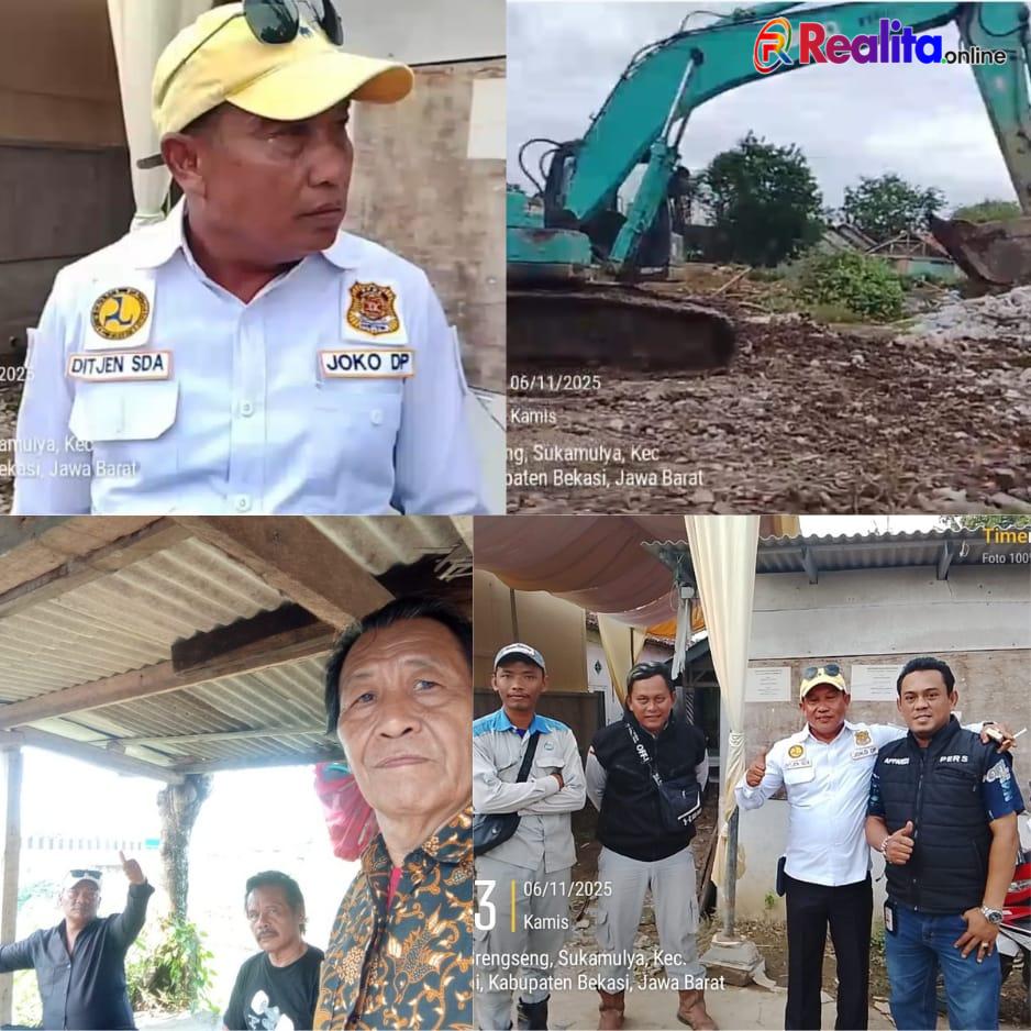 Bekasi, Realita.online – Menindaklanjuti laporan masyarakat terkait dugaan transaksi jual beli tanah normalisasi di Sukatani, tim penindakan hukum (Gakkum) BBWS Jawa Barat, tinjau lokasi di Kampung Srengseng, Desa Sukamulya, Kecamatan Sukatani, Kabupaten Bekasi, Kamis (6/11/2025).