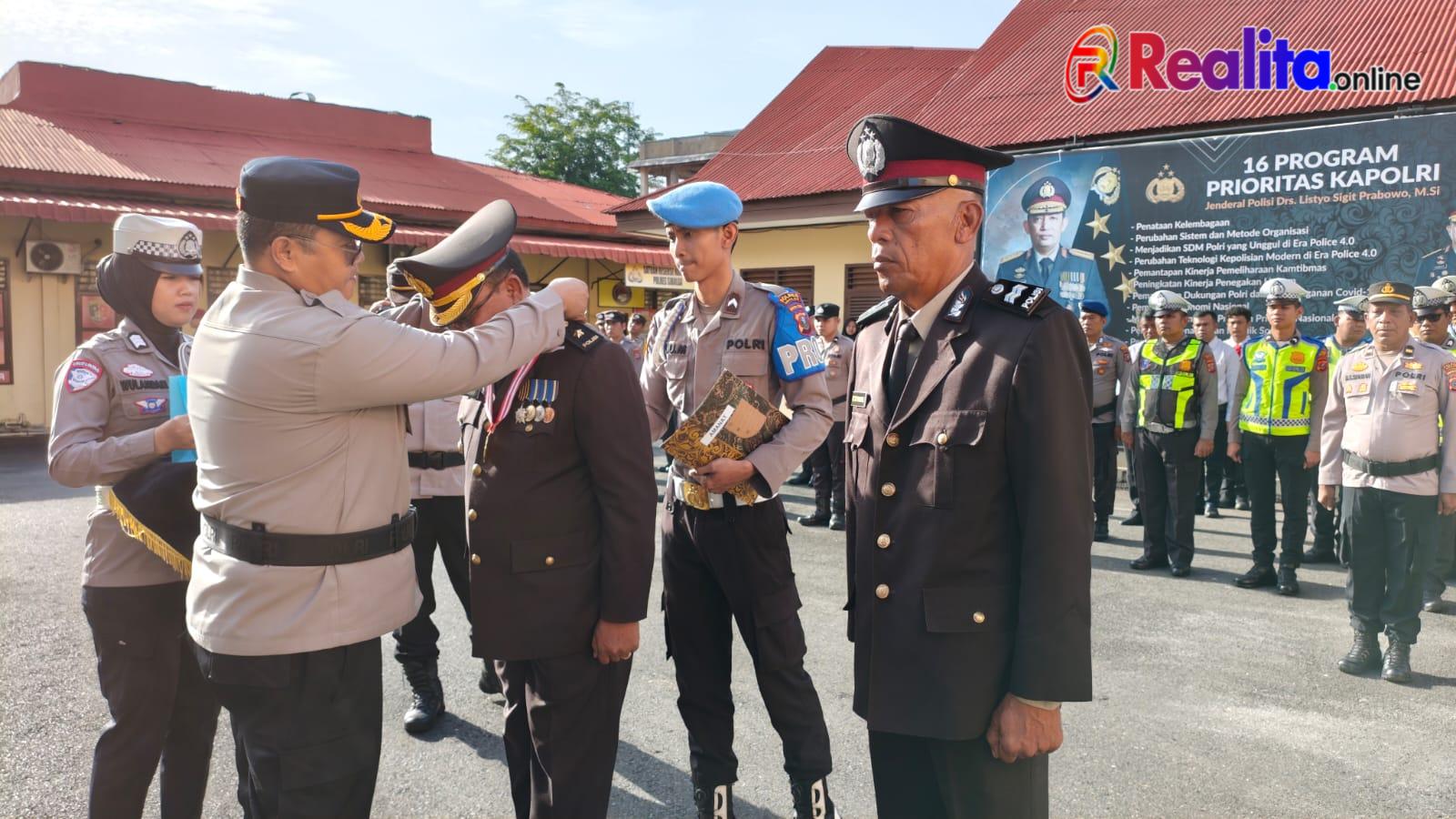 Puncak acara ditandai dengan pengalungan tanda jasa dan pemberian cinderamata oleh Kapolres Sibolga sebagai bentuk penghargaan atas dedikasi dan pengabdian para personel selama bertugas. Setelah itu, inspektur upacara menyampaikan amanat penuh motivasi dan penghargaan, disusul pembacaan doa untuk keselamatan dan kelancaran seluruh anggota Polres.
