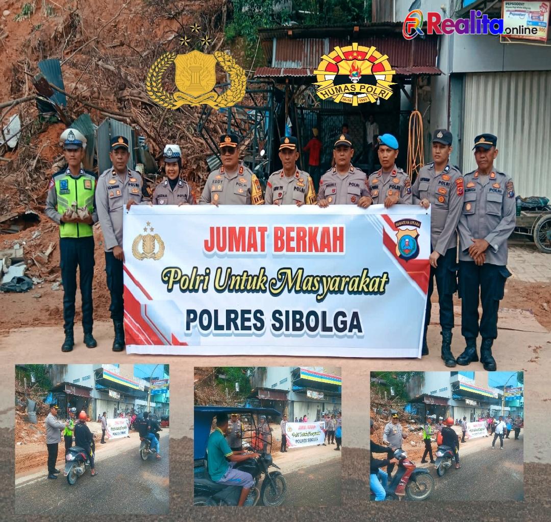Polres Sibolga kembali menunjukkan kepedulian sosial melalui kegiatan Jumat Berkah dengan membagikan nasi kepada warga kurang mampu dan masyarakat yang terdampak bencana banjir serta tanah longsor di Kota Sibolga. Kegiatan tersebut dilaksanakan pada Jumat, 12 Desember 2025, mulai pukul 14.45 WIB di Jalan Sutoyo Siswomiharjo, Kelurahan Kota Beringin, Kecamatan Sibolga Kota.