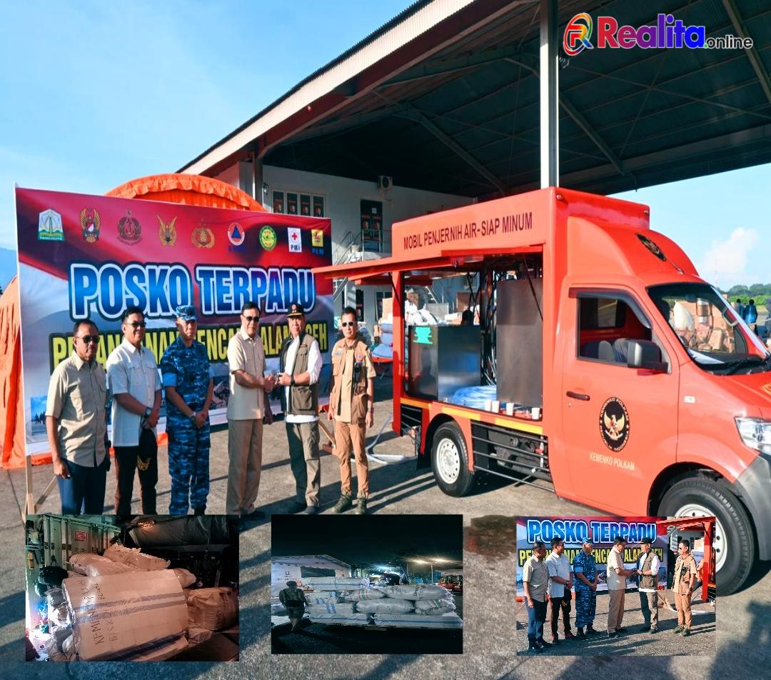 Di posko, Menko Polkam menerima laporan kondisi terkini dari Bupati Pidie Jaya, Aiyub Abbas, dan menyaksikan penyerahan satu unit kendaraan penjernih air dari BNPB kepada Komando Distrik Militer (Kodim) setempat. Kendaraan tersebut langsung diuji coba mengolah air sungai menjadi air layak minum untuk memenuhi kebutuhan air bersih korban bencana.