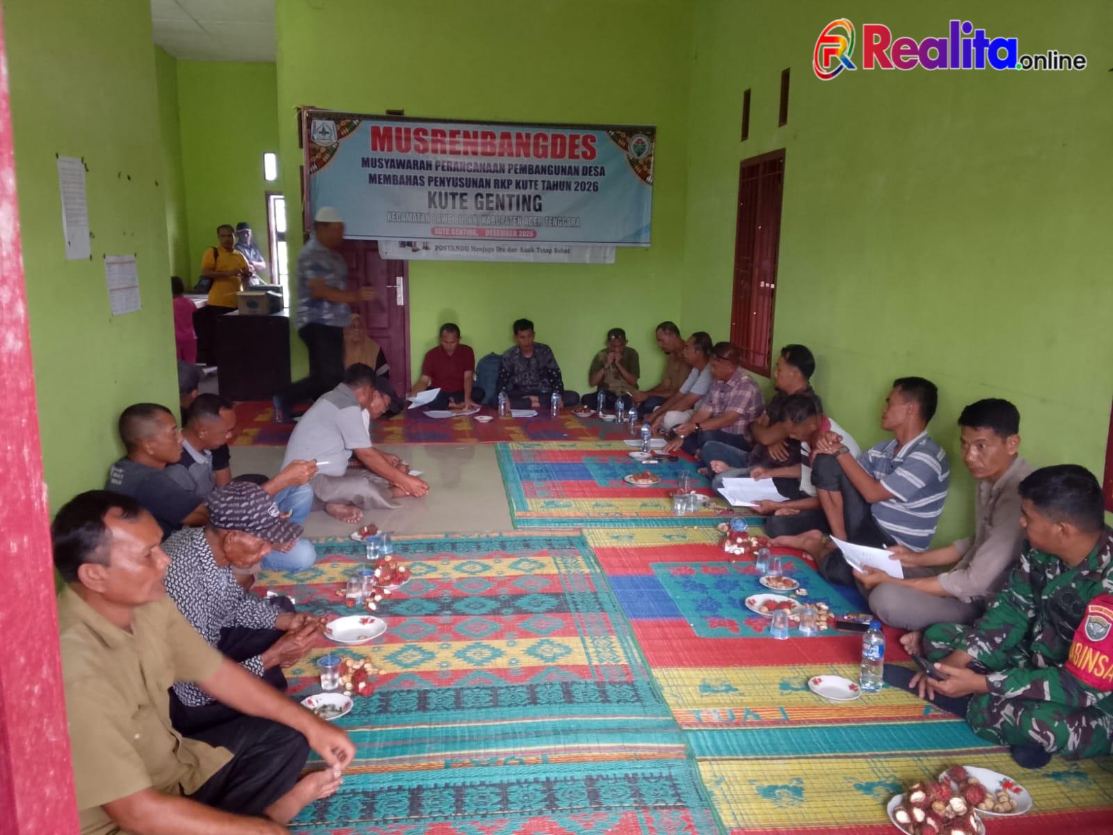 Musyawarah Perencanaan Pembangunan Desa (Musrenbangdes) telah sukses digelar di Kute Genting, Kecamatan Lawe Bulan, Kabupaten Aceh Tenggara. Acara ini membahas penyusunan Rencana Kerja Pemerintah (RKP) Kute untuk tahun 2026.