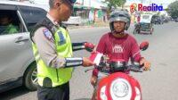 Sat Lantas Polres Pelabuhan Belawan Bagikan Bendera Merah Putih dan Himbau Tertib Lalu Lintas