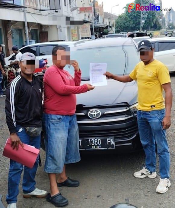 Dalam foto yang beredar, terlihat beberapa pria memegang dokumen dan berdiri di depan kendaraan yang ditarik, tanpa kehadiran aparat kepolisian maupun juru sita pengadilan.