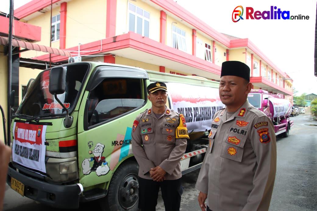 Sebelum pemberangkatan, AKBP Wahyudi Rahman menghubungi Kapolres Langkat untuk menginformasikan pengiriman bantuan sekaligus memastikan pendistribusian berjalan lancar. Dua truk tangki air bersih tersebut diberangkatkan dengan pengawalan personel Sat Lantas Polres Pelabuhan Belawan.