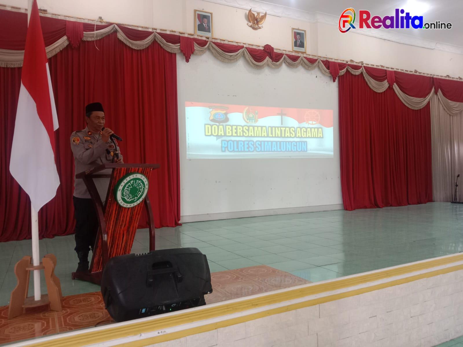 Kepolisian Resor Simalungun bersama dengan Polsek jajaran menggelar kegiatan Doa Bersama Lintas Agama sebagai upaya memperkuat kamtibmas yang aman dan nyaman bagi masyarakat. Kegiatan spiritual ini dilaksanakan pada Sabtu, 30 Agustus 2025 pukul 11.00 WIB bertempat di Aula Gedung MUI Kabupaten Simalungun, Jalan Asahan Km. 3.5 Nagori Siantar Estate, Kecamatan Siantar, Kabupaten Simalungun.