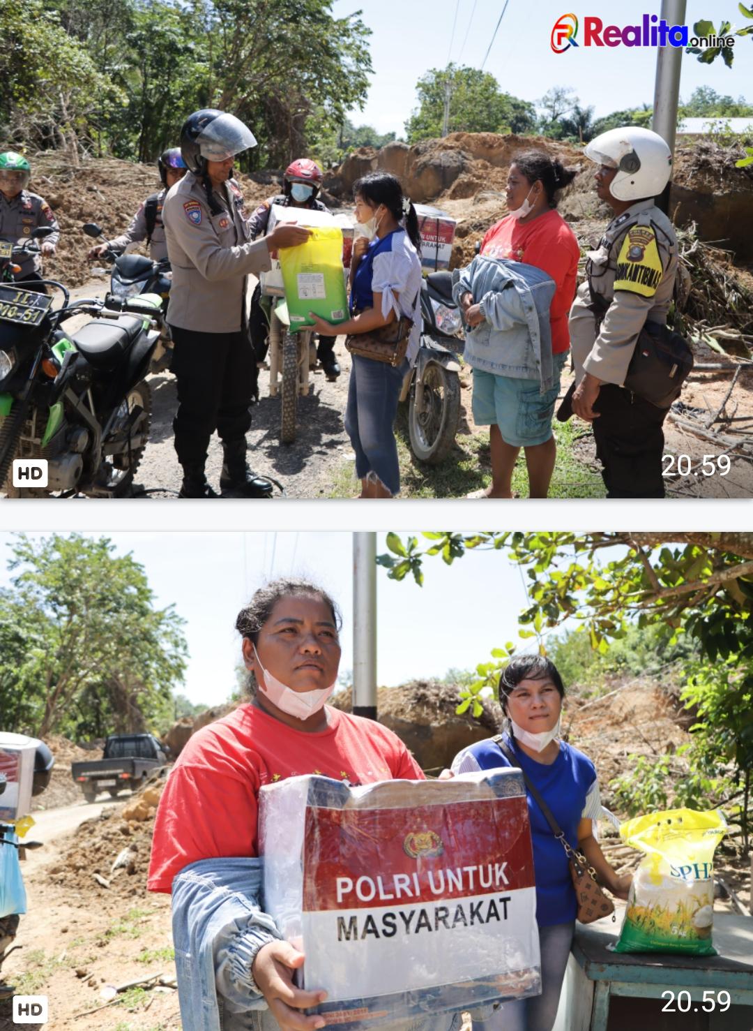Setibanya di lokasi, petugas menyerahkan bantuan secara langsung (door-to-door) kepada warga terdampak Kehadiran Polri di tengah medan sulit ini disambut haru oleh warga yang merasa terbantu di tengah keterbatasan akses logistik.