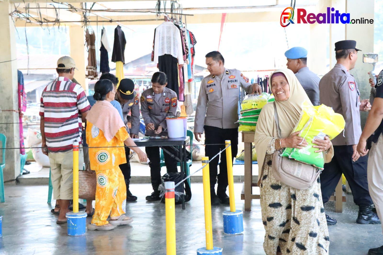 Dalam GPM hari ini, Polres Tapanuli Tengah bekerja sama dengan Perum Bulog Sibolga. Total 15.000 kg (15 ton) beras jenis SPHP berhasil disalurkan kepada masyarakat dengan harga Rp 60.000 per 5 kg. Seluruh stok beras tersebut telah tersalurkan habis. Kegiatan ini bertujuan untuk menjaga ketersediaan beras bagi masyarakat.