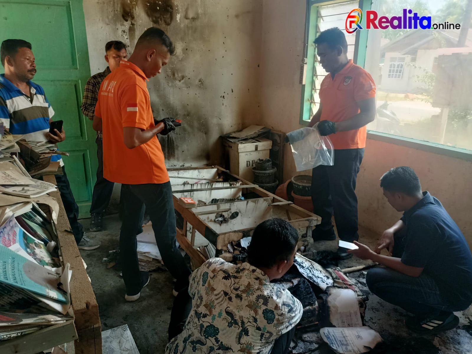 Kepolisian Resor (Polres) Tapanuli Tengah melalui personel Polsek Kolang melakukan olah Tempat Kejadian Perkara (TKP) terkait peristiwa kebakaran yang menghanguskan sebagian ruangan di Kantor Kelurahan Tapian Nauli II, Kecamatan Tapian Nauli, Kabupaten Tapanuli Tengah, Kamis (30/4/2026).