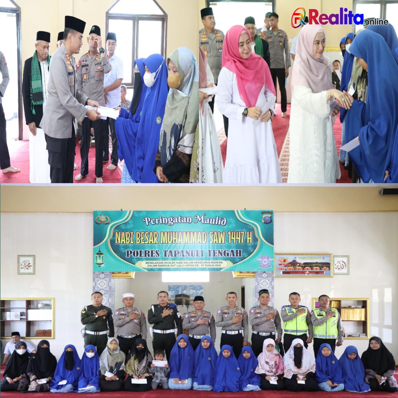 Kepolisian Resor (Polres) Tapanuli Tengah menggelar peringatan Maulid Nabi Muhammad SAW 1447 H di Masjid Darussalam Polres Tapanuli Tengah, Kamis (4/9). Acara ini mengusung tema “Meneladani Akhlak dalam Kehidupan Modern dalam Rangka HUT Lalu Lintas ke-70 Tahun 2025” dan dihadiri oleh jajaran personel Polres serta tamu undangan.